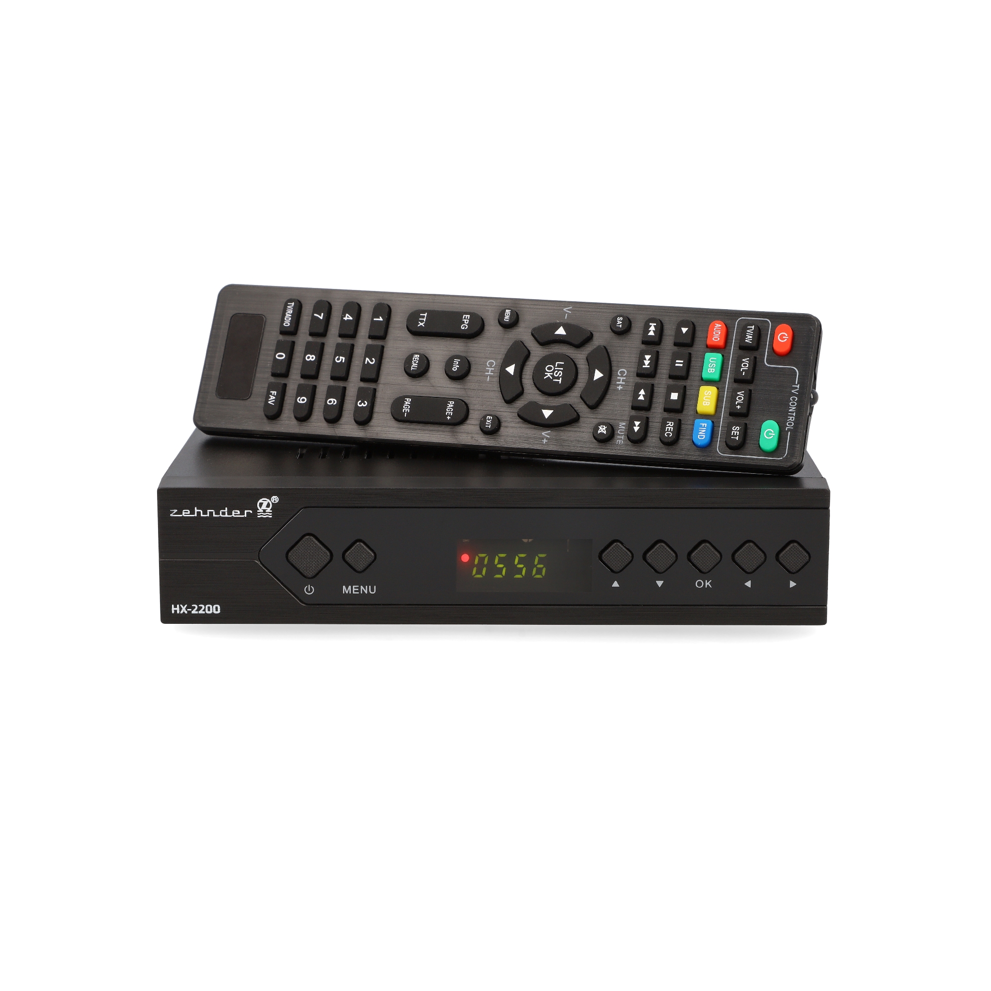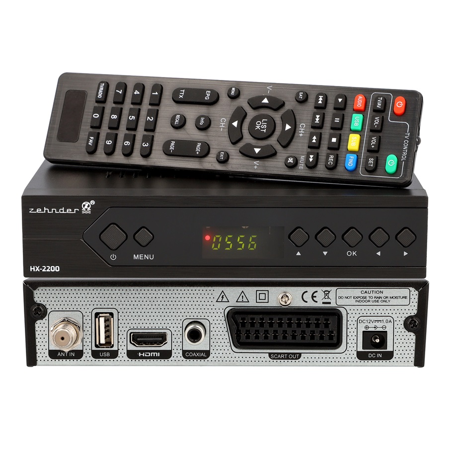 Dieser digitale HD-Satellitenreceiver ZEHNDER HX-2200 ist ein einfach bedienbarer Receiver zum Empfang aller freien TV– und Radiosender via Satellit, inklusive der in HDTV frei ausgestrahlten Programme in Full HD 1080p. Es stehen unzählige Anschlüsse zur Verfügung: Ein USB 2.0 Port, ein digitaler Tonausgang (COAXIAL), ein Scart-Anschluss - sowie einen HDMI-Anschluss. Optional kann über den USB-Port eine WiFi Antenne angeschlossen werden. Durch den Anschluss einer externen Festplatte oder eines USB-Sticks wird das Gerät zu einer Multimediastation zur Wiedergabe von Filmen, Bildern und Musik oder zur Aufnahme Ihrer TV-Sendungen. Ein USB-Speichermedium (externe Festplatte oder USB-Stick) ist nicht im Lieferumfang enthalten. Durch das externe 12V Netzteil eignet sich dieser Receiver auch ideal für Ihren Campingurlaub. Mit der lernbaren Fernbedienung können Sie die Schaltsignale Ihrer TV-Fernbedienung anlernen und damit Ihren TV steuern.