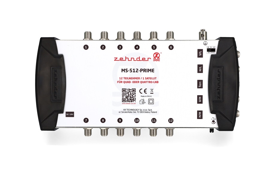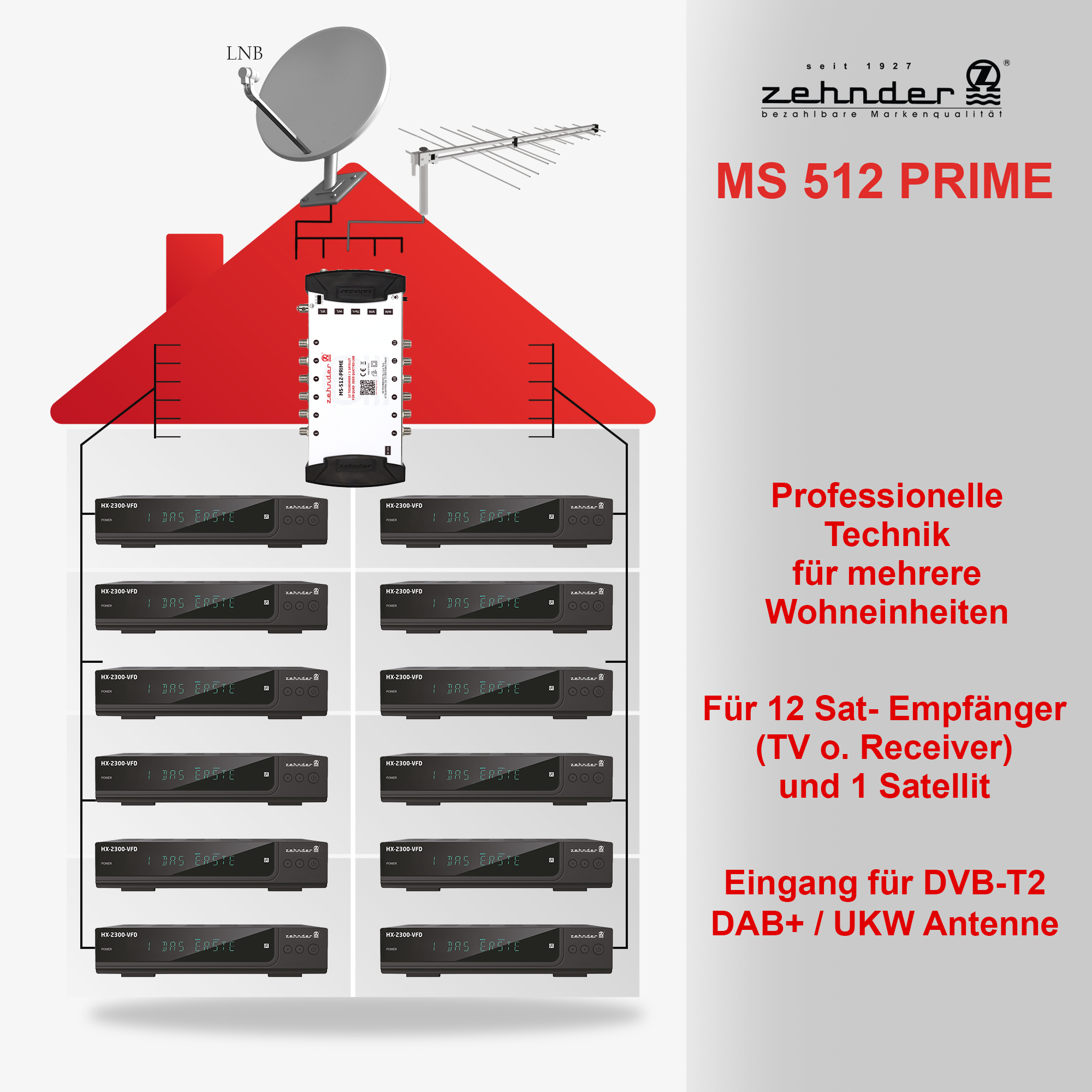 Mit dem Multiswitch Zehnder MS-512-PRIME können Sie 1 Satellitensignal auf 12 Teilnehmer verteilen.